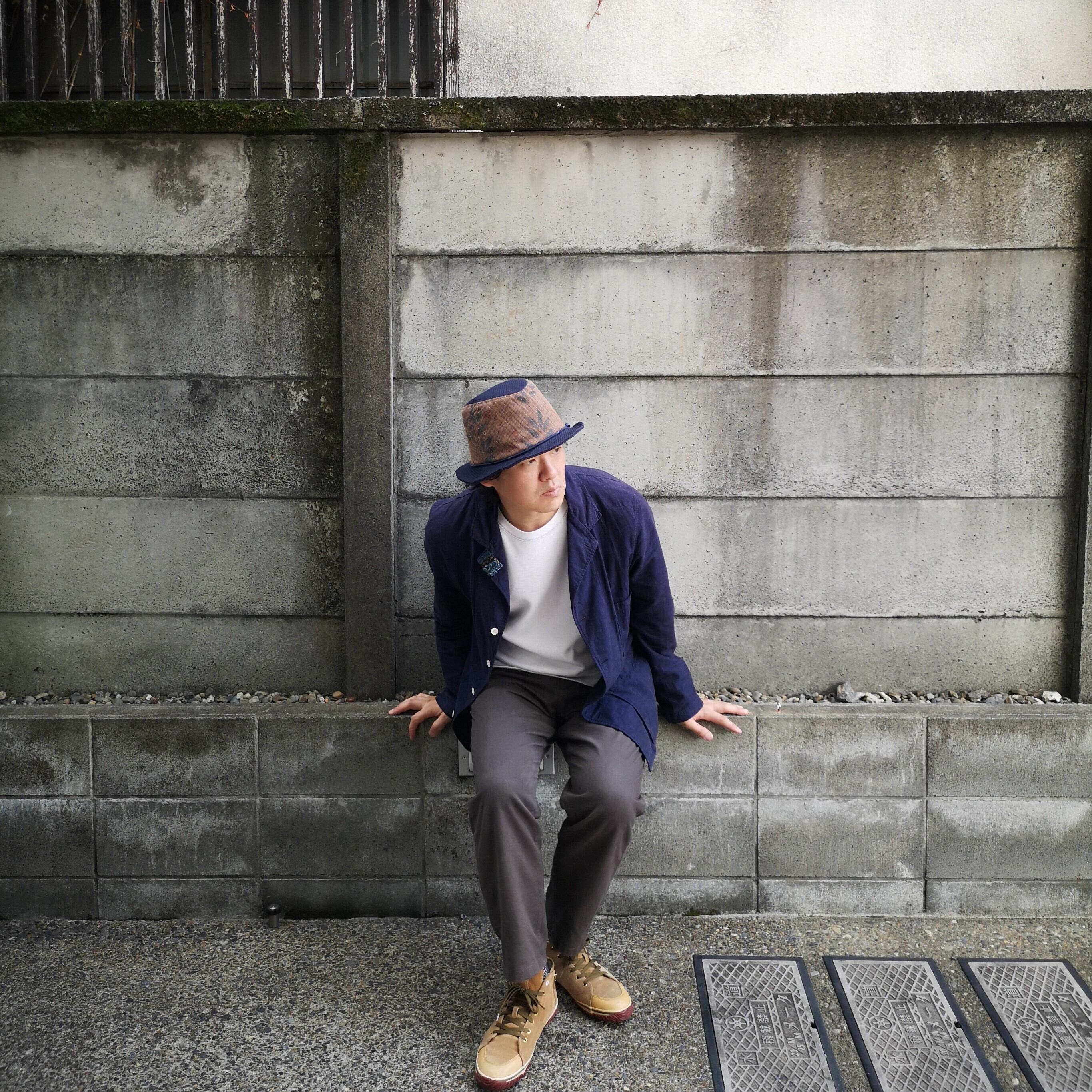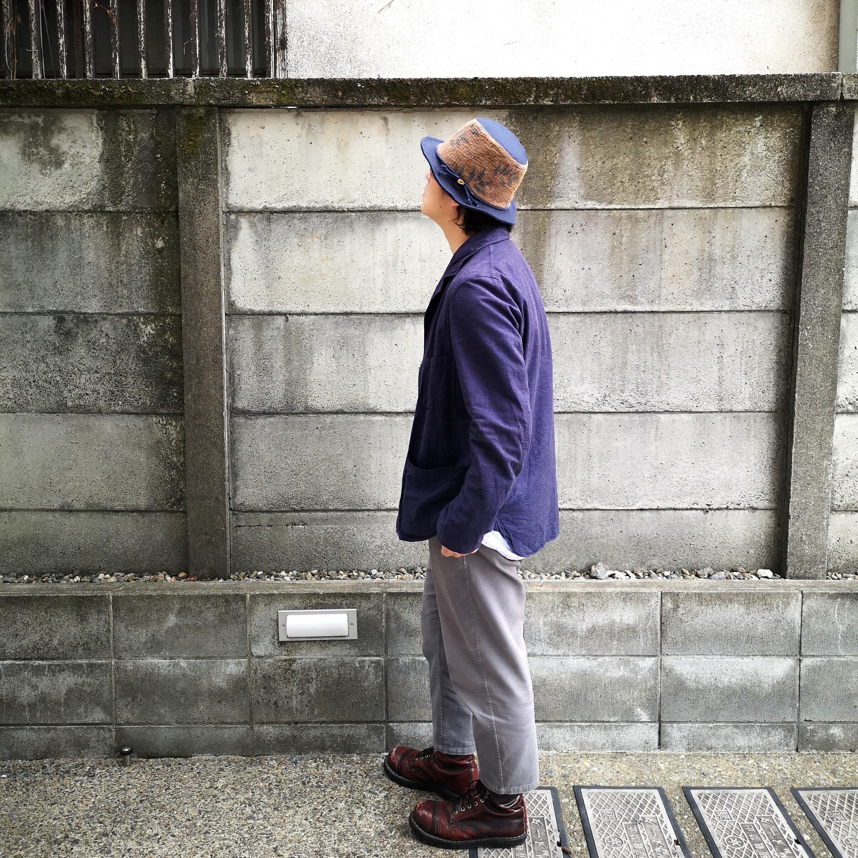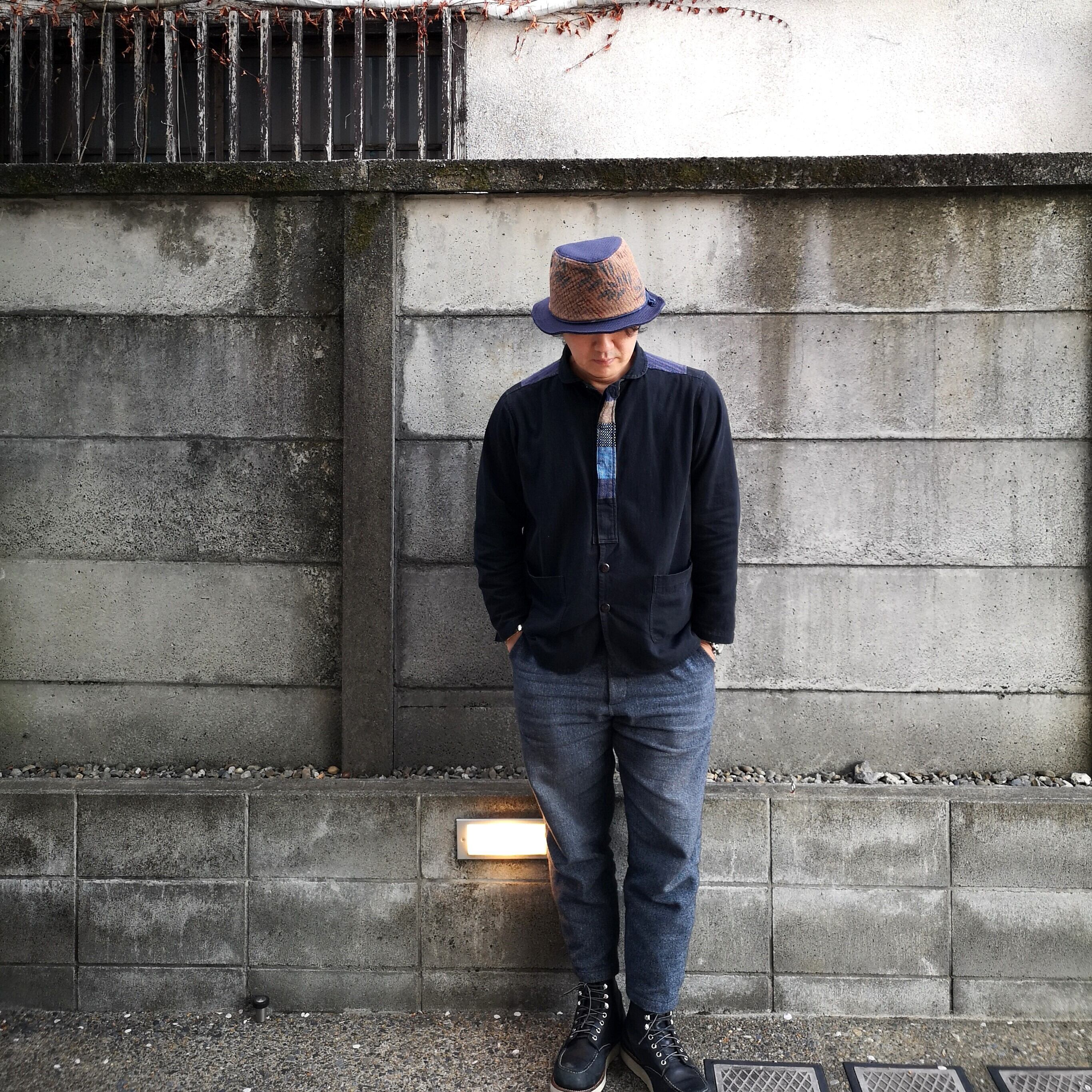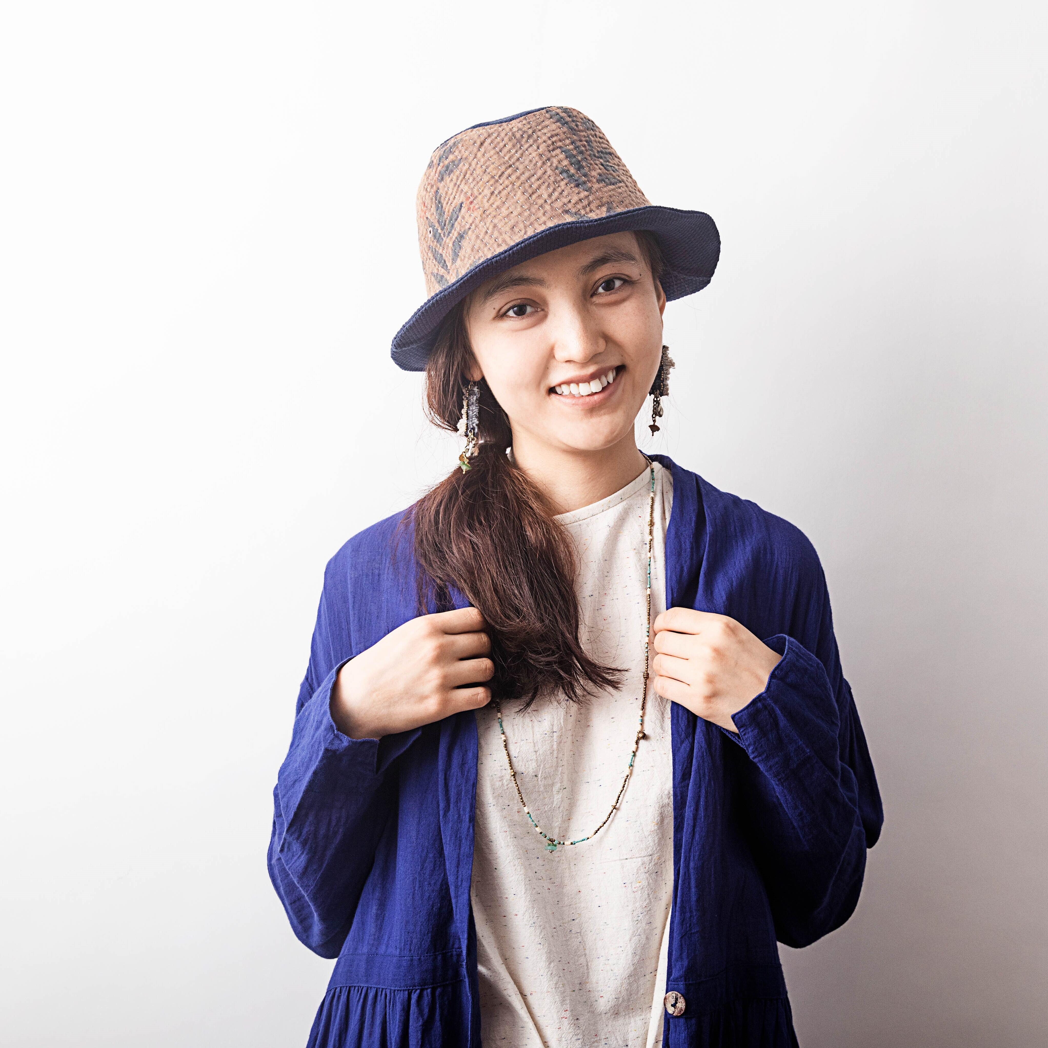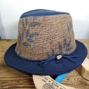 サイドクラウンにインドのラリーキルトを、トップクラウンとブリム(つば)に日本の剣道着で使われるコットンを組み合わせ作ったハット。